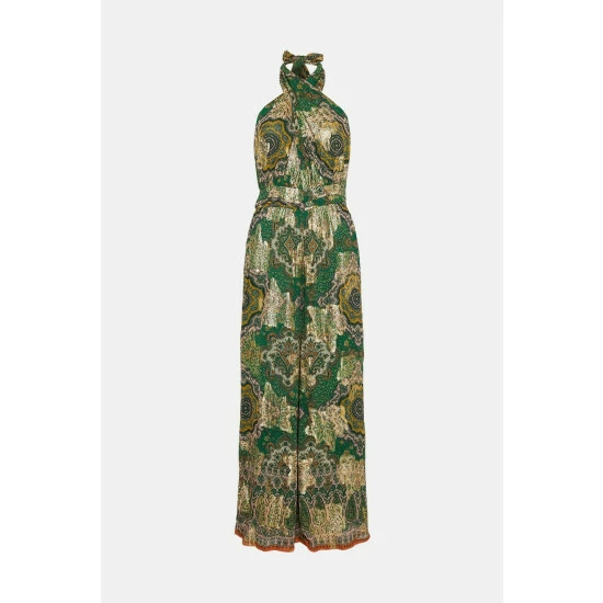 Warehouse Petite Abstract V Neck Pleated Maxi Dress For Female