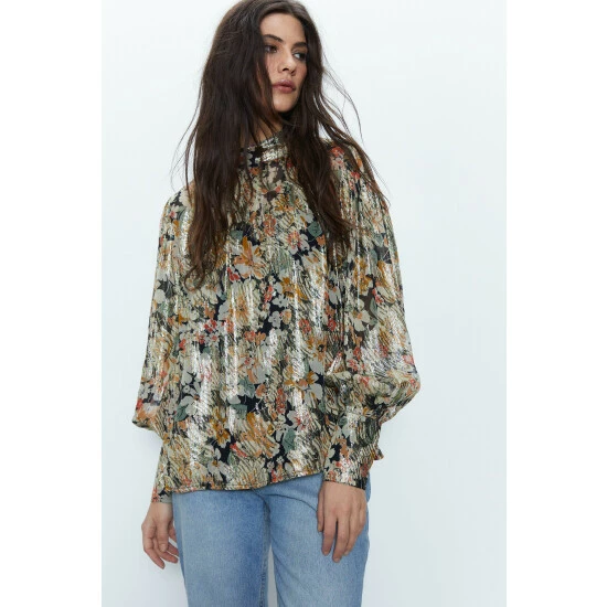 Fabric 79% Viscose 21% Metallised fibres. Machine wash.