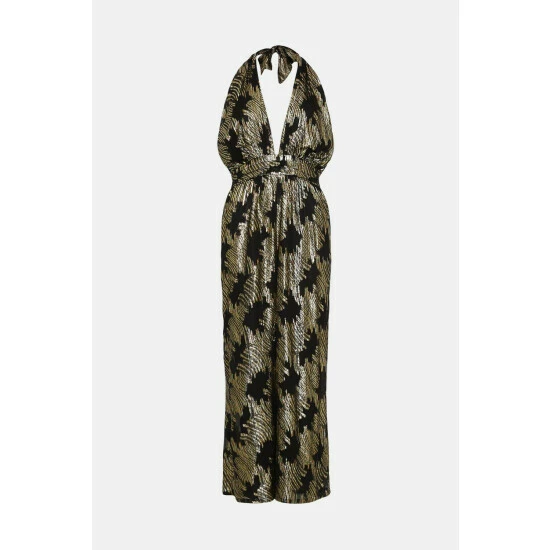 Warehouse Petite Abstract V Neck Pleated Maxi Dress For Female
