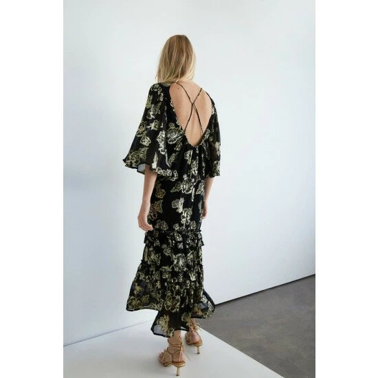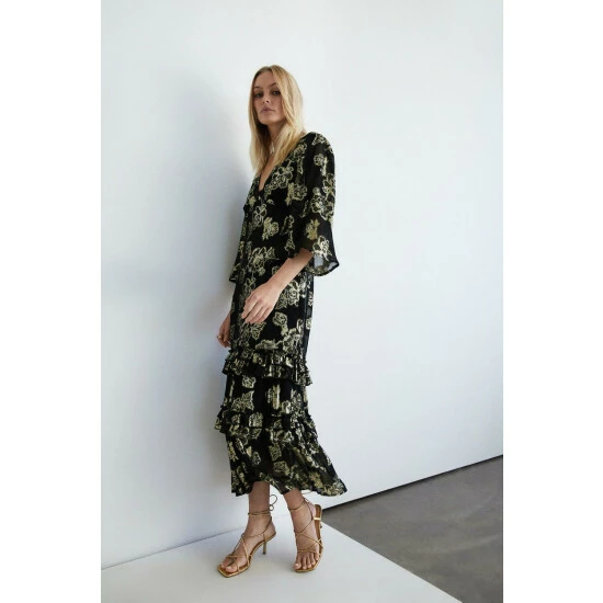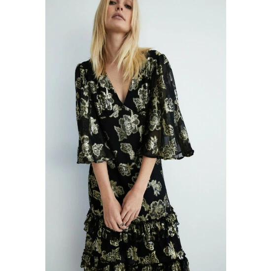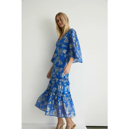 Main 82% Viscose and 13% Metallised Fibre and 5% Polyester. Lining 100% Polyester. Machine Wash. Model wears UK size 10. Length UK size 10: 132cm