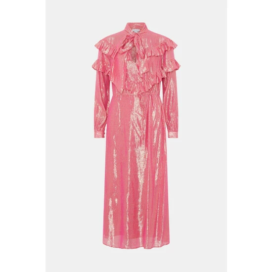 Warehouse Petite Abstract V Neck Pleated Maxi Dress For Female