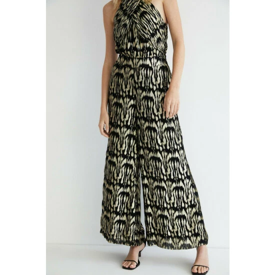 Warehouse Petite Abstract V Neck Pleated Maxi Dress For Female