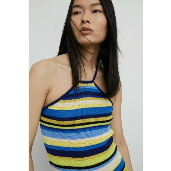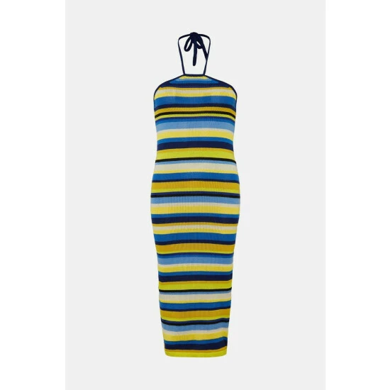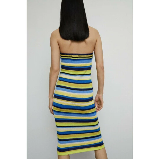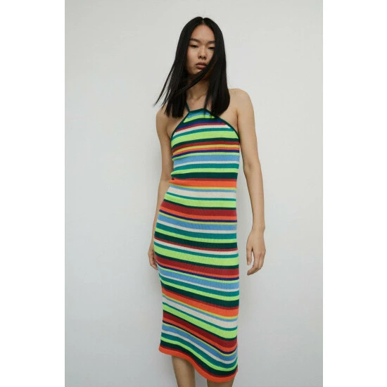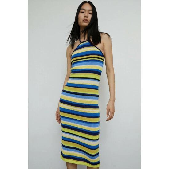 50% acrylic 50% cotton. Model wears size UK S. Length from side neck point is 114cm. Hand wash only.