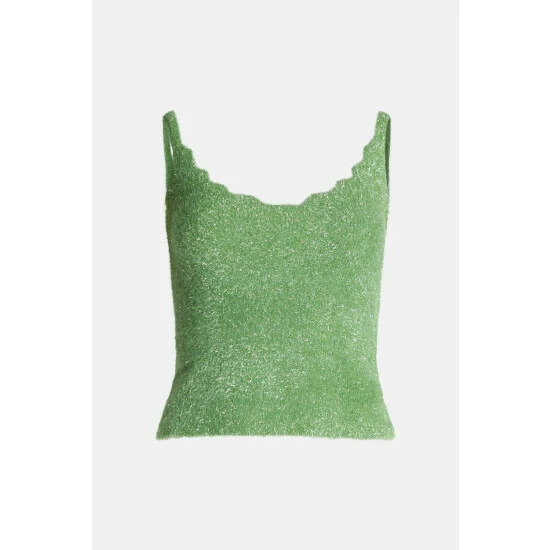 Tinsel Scallop Neck Knit Top