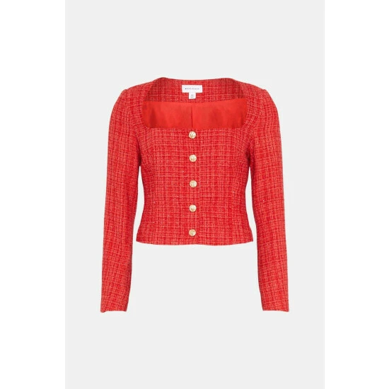 Main: 54% Polyester 30% Viscose 10% Polyamide 6% Metallised fibre. Lining: 100% Polyester – Dry clean. Model wears a UK size 10. CB length: 46cm.