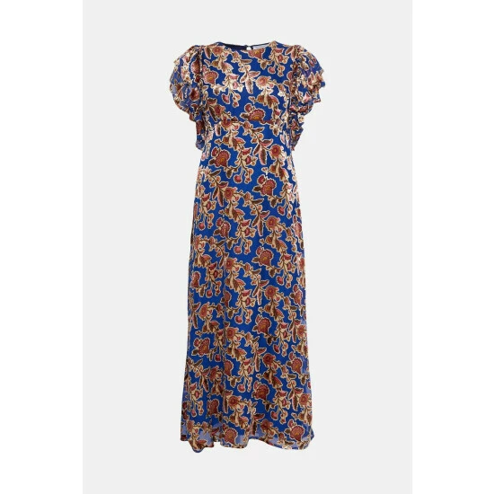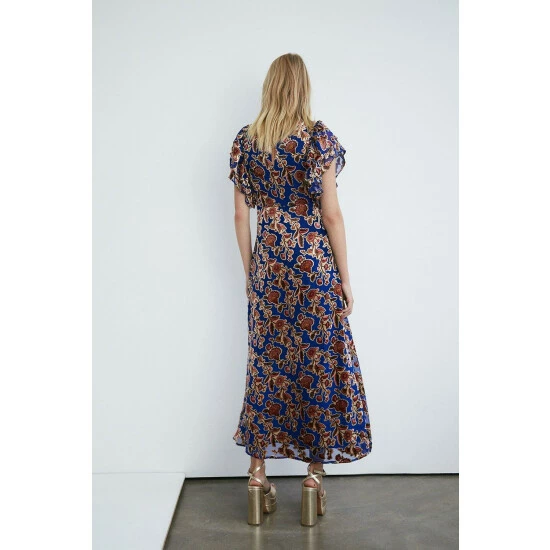 Warehouse Petite Abstract V Neck Pleated Maxi Dress For Female