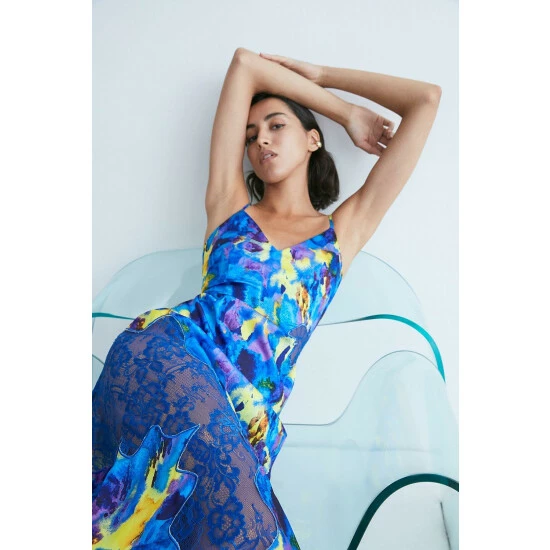 100% Polyester – Machine Wash. Model wears UK 10. Length in UK size 10: 145cm