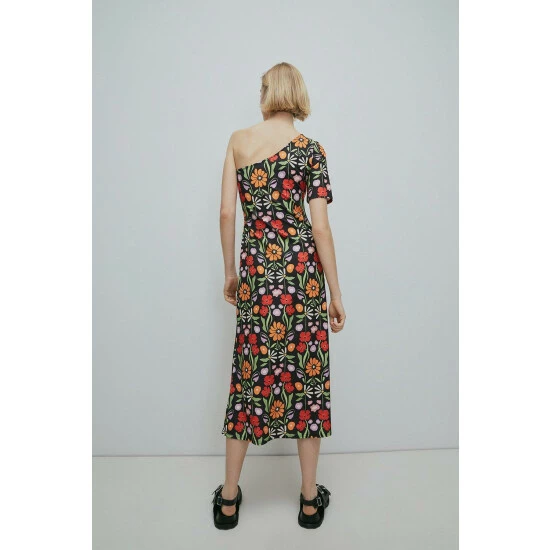 35% Recycled Polyester 60% Polyester 5% Elastane. Wash with similar colours. Model wears a UK size 10. Length from SNP to hem: 128cm