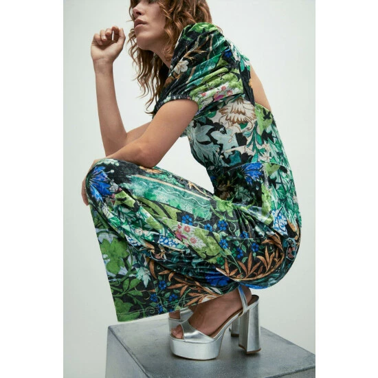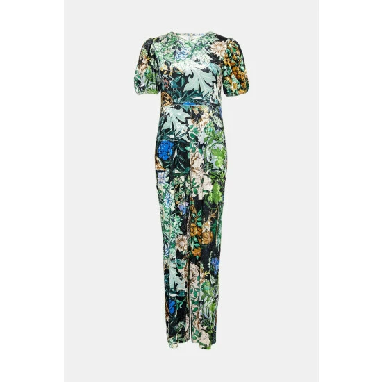 Warehouse Petite Abstract V Neck Pleated Maxi Dress For Female