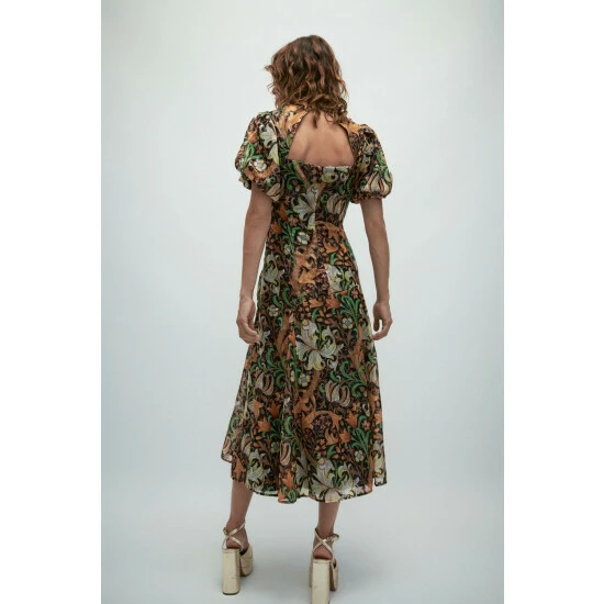 Warehouse Plus Size Embroidered Yoke Floral Midi Dress For Female
