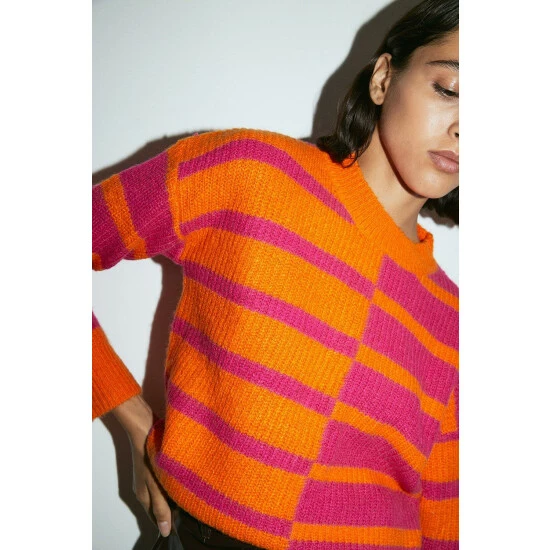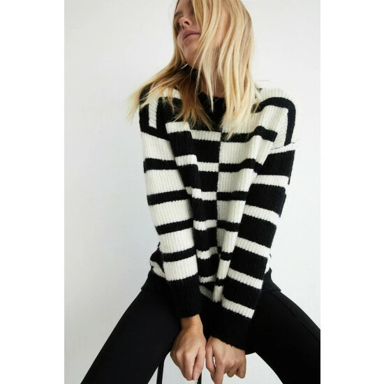 Style: Midweight JumperDesign: StripesFabric: KnittedLength: RegularNeckline: CrewSleeve Length: Long Sleeve