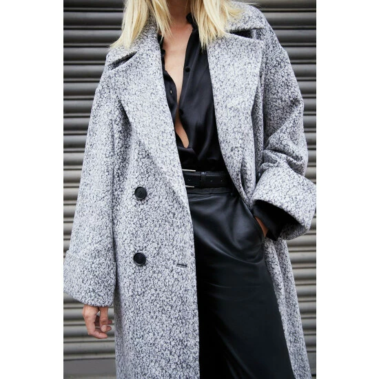 Main: 80% Polyester 20% Wool. Lining: 100% Polyester. Model wears a UK size 10. CB Length: 117cm.