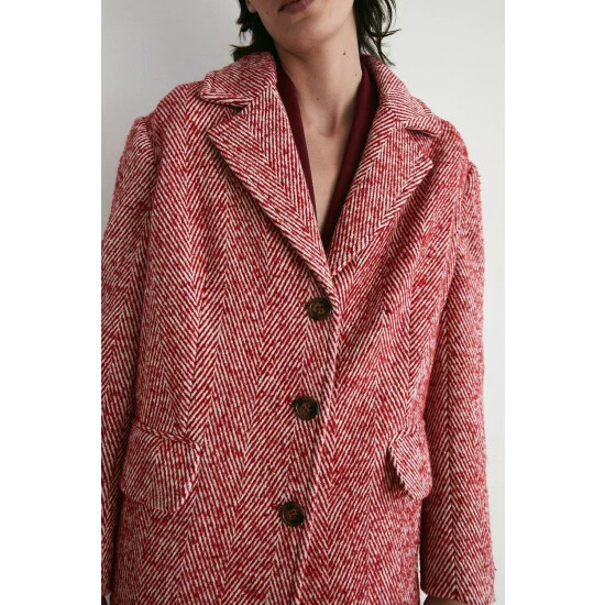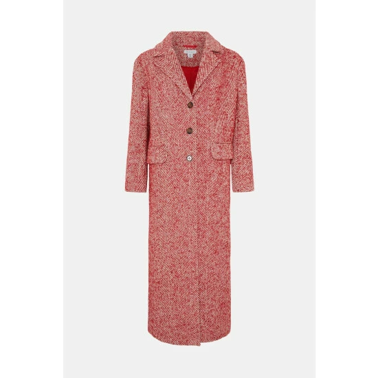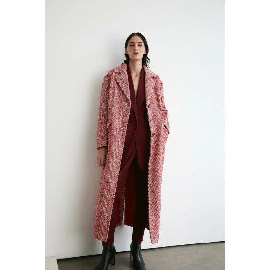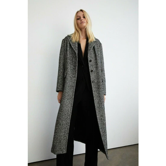 Outer: 80% Polyester 20% Wool. Lining: 100% Polyester – Dry clean only. Model wears a UK size 10. CB Length: 131cm.