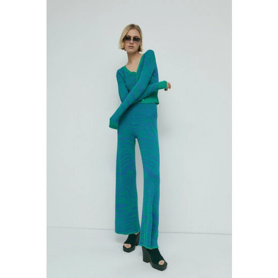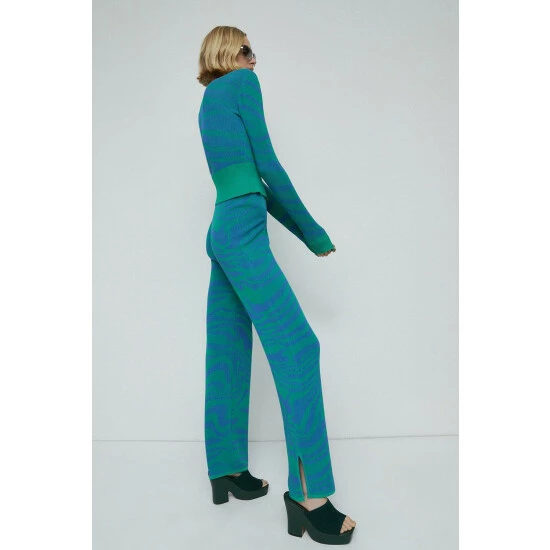 Style: Wide Leg TrousersDesign: JacquardFabric: KnittedLength: Regular