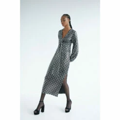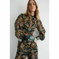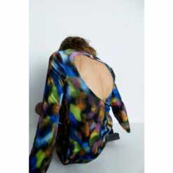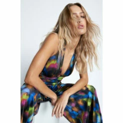 Warehouse Art Print Velvet Halter Neck Wide Leg Jumpsuit For Female
