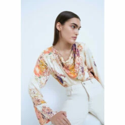 Warehouse Plus Size Floral Ruffle Detail Lace Up Blouse For Female