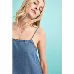 Warehouse Petite Denim Dropped Waist Cami Midi Dress For Female