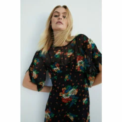 Warehouse Petite Floral Flippy Mock Neck Midi Dress For Female
