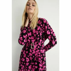 Warehouse Petite Animal Printed Plisse Shirt Dress For Female