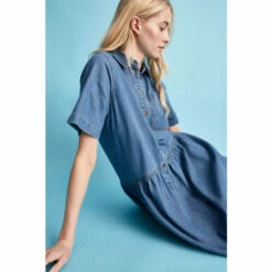Warehouse Petite Denim Dropped Waist Midi Shirt Dress For Female