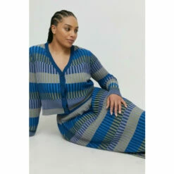 Warehouse Plus Size Colour Block Plated Rib Knit Skirt For Female