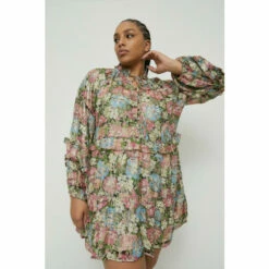 Warehouse Plus Size Sparkle Tie Neck Frill Mini Dress In Floral For Female