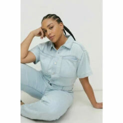 Warehouse Plus Size Denim Short Sleeve Belted Boilersuit For Female