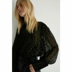 Warehouse Plus Size Sparkle High Neck Puff Sleeve Top For Female