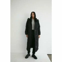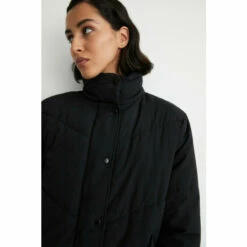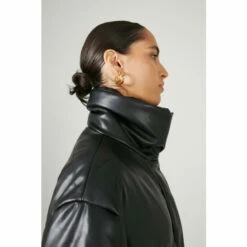 Warehouse Faux Leather Funnel Neck Maxi Duvet Coat For Female