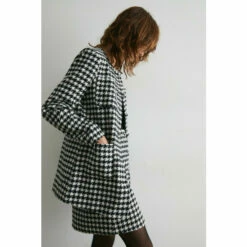 Warehouse Cropped Sequin Tweed Double Breasted Jacket For Female