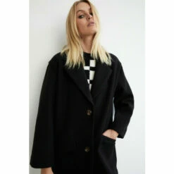 Warehouse Wool Blend Textured Oversized A Line Coat For Female