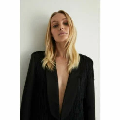 Warehouse Single Breasted Modern Faux Leather Blazer For Female