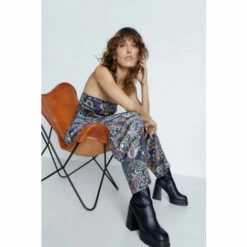 Warehouse Paisley Print Velvet Bandeau Wide Leg Jumpsuit For Female