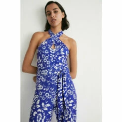 Warehouse Halter Neck Floral Border Print Jumpsuit For Female